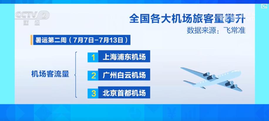 工作人员告诉记者,暑期开始首都机场旅客量大幅攀升,出行峰值预计出现在八月左右。数据显示,暑运第二周,上海浦东、广州白云、北京首都机场客流量位居全国前三。全国共计有9座机场的累计旅客吞吐量迈上两百万人次大关。