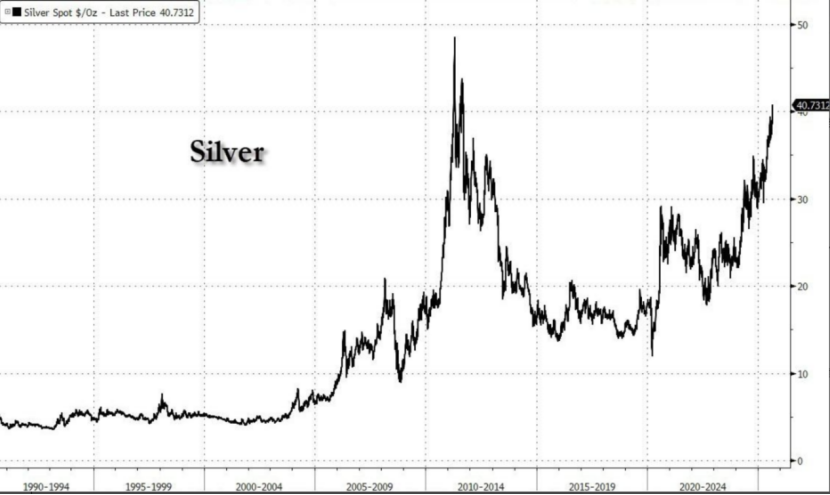 受此影响,美东时间9月1日,美元指数持续走弱并再度跌破98,白银现货价格持续拉升,突破40美元/盎司大关,创造2011年以来新高,日内涨幅超过2%;黄金价格也实现五连涨,一度涨1.2%、接近历史高位3500美元附近。